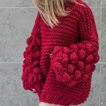 Suéter de Manga Lanterninha Vermelha de Boa Qualidade, Cardigã de Maternidade Tricotado à Mão para Mulheres