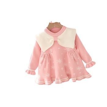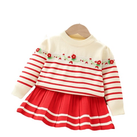 ชุดเสื้อสเวตเตอร์2ชิ้นสำหรับเด็กผู้หญิงชุดเสื้อถักแบบถักลาย