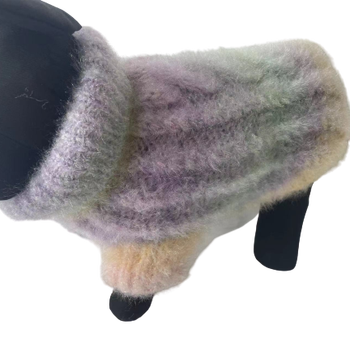 เสื้อสเวตเตอร์คอเต่าสำหรับสัตว์เลี้ยงเสื้อสเวตเตอร์ถักแบบสวมหัวสำหรับสุนัขแมวสีม่วงทำมือ